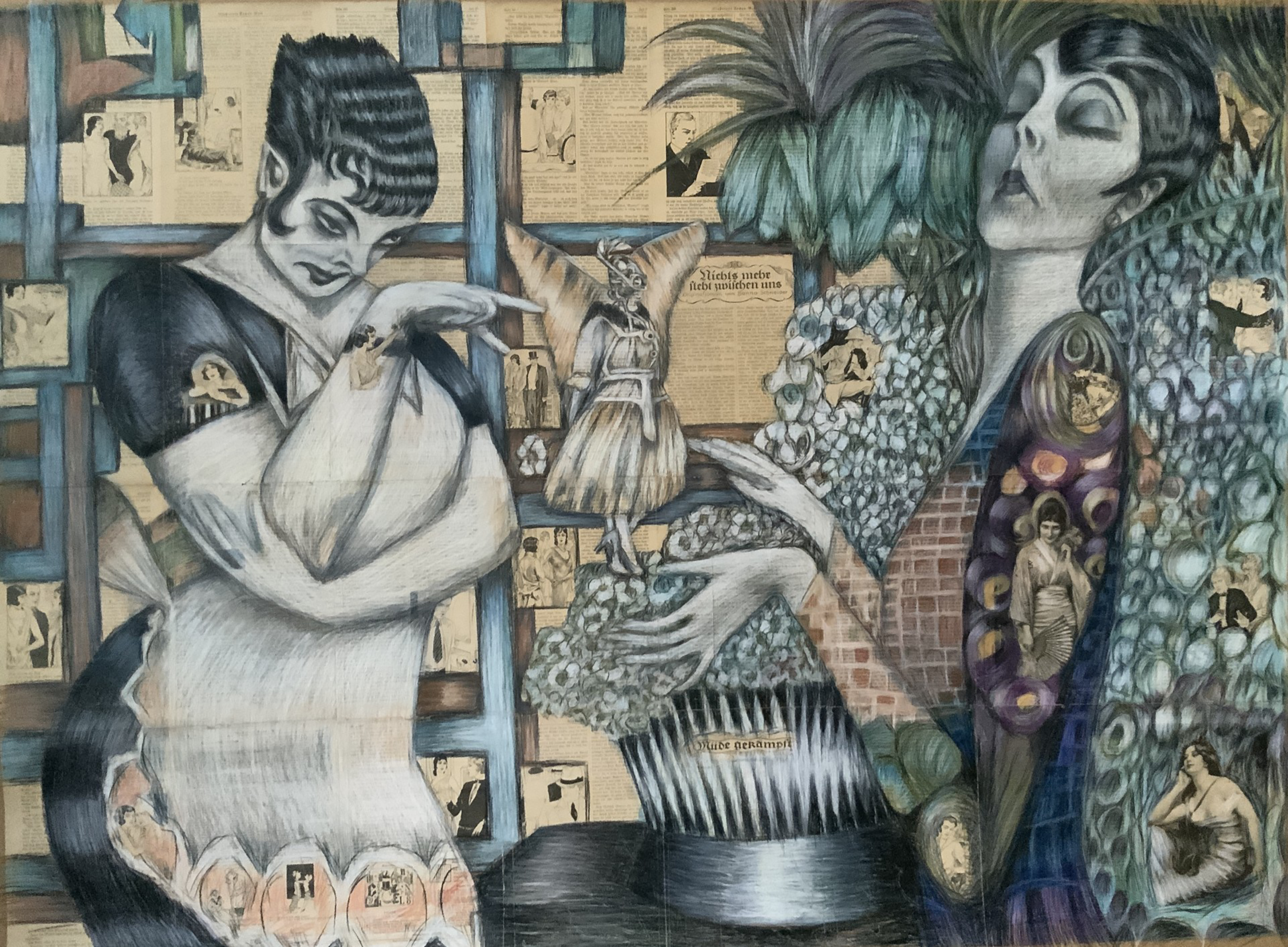 Michael Pyter brings diverse perspectives to his artistic practice through his work as a graphic and motion designer, illustrator, and actor. “Next to Eldorado” presents, for the first time, a selection of his large-format chalk drawings (triptych 2.10 m x 4.80 m) on Berlin newspapers from the 1920s, in which he explores various lifestyles, interpersonal relationships, and states of mind. The motifs oscillate between dream sequences and theatrical scenes—atmospherically ethereal, yet always with a precise attention to body language and composition. The use of chalk and 100-year-old newspapers underscores the fleeting nature of the depicted moments and forms a bridge to queer life in the Nollendorf neighborhood—then and now. Find out more about the artist here. HERE